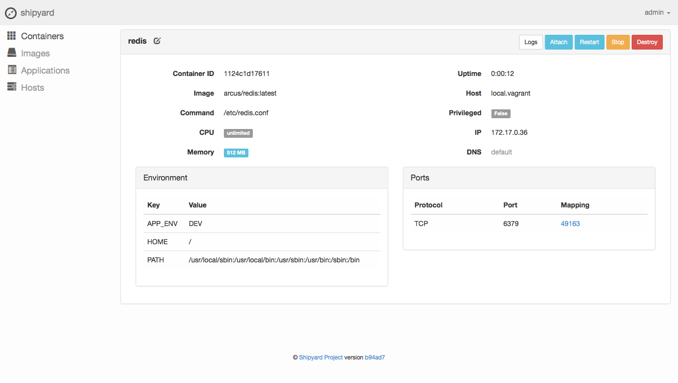 - Note: for attaching to containers you must have access to the docker host. This will change in the future.
