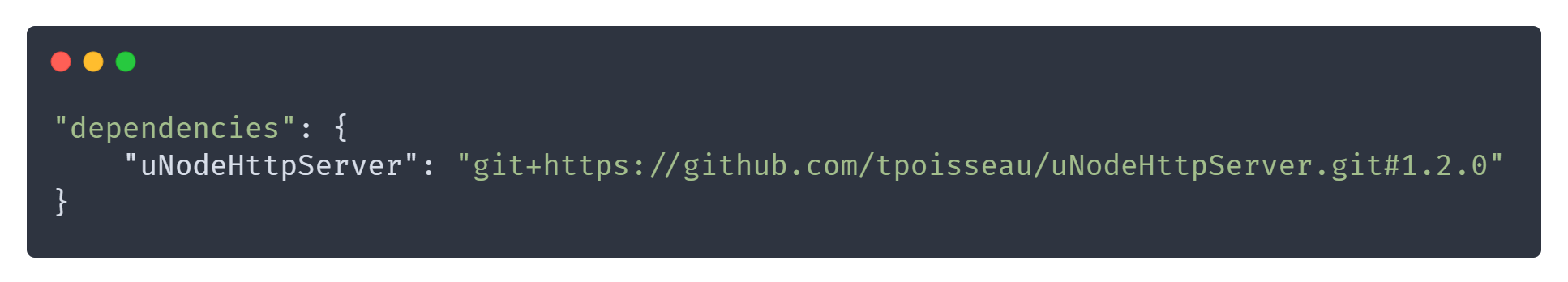 `{ "dependencies": { "zen-observable": "^0.8.15", "nanoid": "github:ai/nanoid", "js-x-ray": "git://github.com/NodeSecure/js-x-ray.git", "nanodelay": "git+ssh://git@github.com:ai/nanodelay.git", "nanoevents": "git+https://github.com/ai/nanoevents.git" } }`