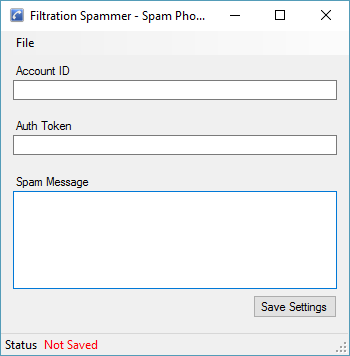 Open the program and click Tools > Settings. Add your AuthToken and Account ID, and Spam Message